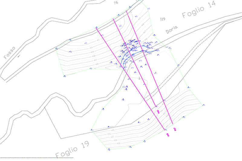 Verifichiamo i confini catastali di proprietà e procediamo alla loro rettifica. Per individuare sul luogo l’esatta posizione dei confini, procediamo dapprima alla ricerca presso gli archivi degli atti che hanno originato le particelle catastali, quindi poi, mediante il rilievo dello stato di fatto e di punti di appoggio attendibili, supportate da software di gestione dati ed elaborazione grafica di quanto rilevato in campagna o in cantiere, seguiamo una fedele restituzione grafica a piano quotato o curve di livello e calcoliamo le coordinate dei vertici del confine, completando il lavoro col picchettamento delle dividenti sul posto.